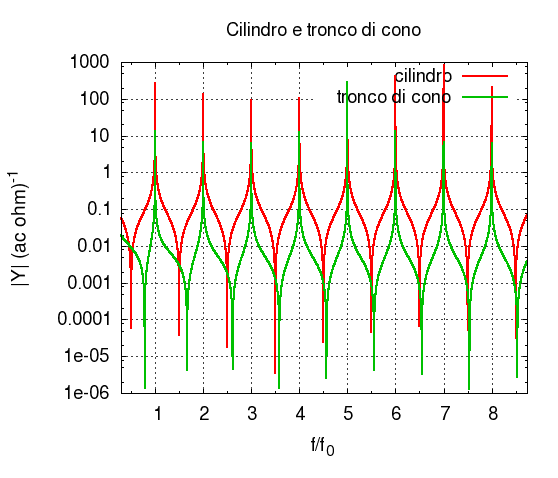 Paragone tra le risposte acustiche di un cilindro e di un tronco di cono di pari altezza. Canne senza attrito e non radianti.