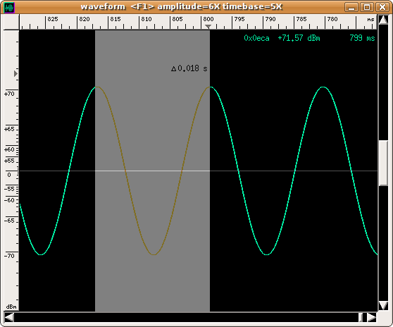 sinusoide a 55Hz. Evidenziato il tempo periodo