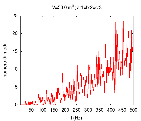 Densità modale per una stanza di 50 m3 con rapporti tra i lati 1:2:3
