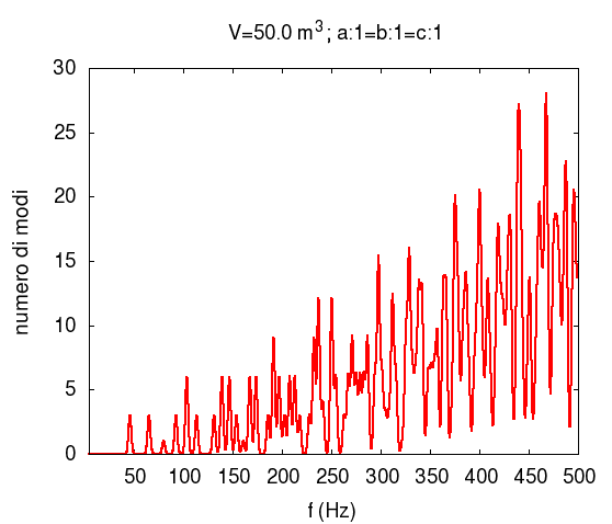 Densità modale per una stanza di 50 m3 con rapporti tra i lati 1:1:1