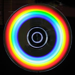 - Avrai notato che nello spettro precedente è del tutto assente la luce bianca la quale, paradossalmente, è quella che ci è più familiare. Dobbiamo forse concludere che tale tipo di luce non è un'onda elettromagnetica? La risposta è negativa: la luce bianca è data dalla sovrapposizione di tutte le componenti spettrali della luce visibile. In tale sovrapposizione l'intensità delle varie componenti deve essere confrontabile. Newton, in una notissima esperienza, servendosi di un prisma di vetro riusci a scomporre, grazie al fenomeno della rifrazione, la luce nelle sue componenti spettrali. Puoi riprodurre l'esperienza di Newton in modo molto artigianale: prova ad osservare un raggio di luce solare attraverso il bordo di una piccola riga da disegno o facendo riflettere la luce dalla superficie di un CD (vedi foto a lato): ti apparirà uno spettro in miniatura (con i colori disposti esattamente nello stesso ordine dello spettro elettromagnetico).